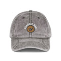 The washed-out vintage effect gives it a unique, distressed feel, with each hat having slight color variations for that one-of-a-kind charm. Finished with 6 sewn eyelets for breathability, a black sweatband for comfort, and a metal snap buckle with an antique brass finish, this cap is the perfect mix of style and durability.